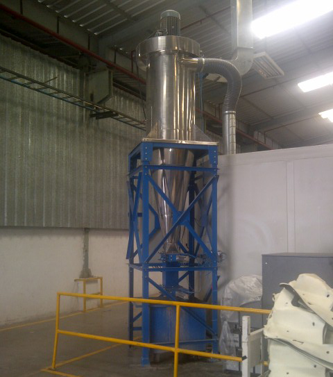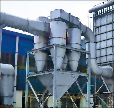 cyclone through the inlet pipe located tangentially to the cylindrical