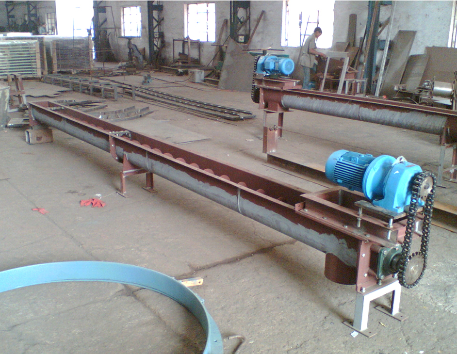 Screw Conveyors Screw conveyor is the most simplest & oldest method of conveying bulk materials in a enclosed trough in horizontal, inclined & vertical profile and have several advantage for certain types of conveying, cooling, mixing & blending, where churning action of the revolving screw is not objectionable. The material is moved with the help of spiral helical screw flights rotating in the stationary trough. Aerovent can offer screw conveyors of length upto 35 Mtrs or more with help of intermediate hanger bearings and capacities upto 150 TPH. This conveyor facilitate multi feed or multi discharge with the help of gates at its inlet or outlet. Screw conveyors can be easily sealed to dust and fumes entering or escaping or can be jacketed to serve as a dryer or cooler. We can offer screw conveyor from 100 mm to 1000 mm diameter for various applications with standard helical screw, twin screw, ribbon flight screw, paddle type screw and screw feeders etc.